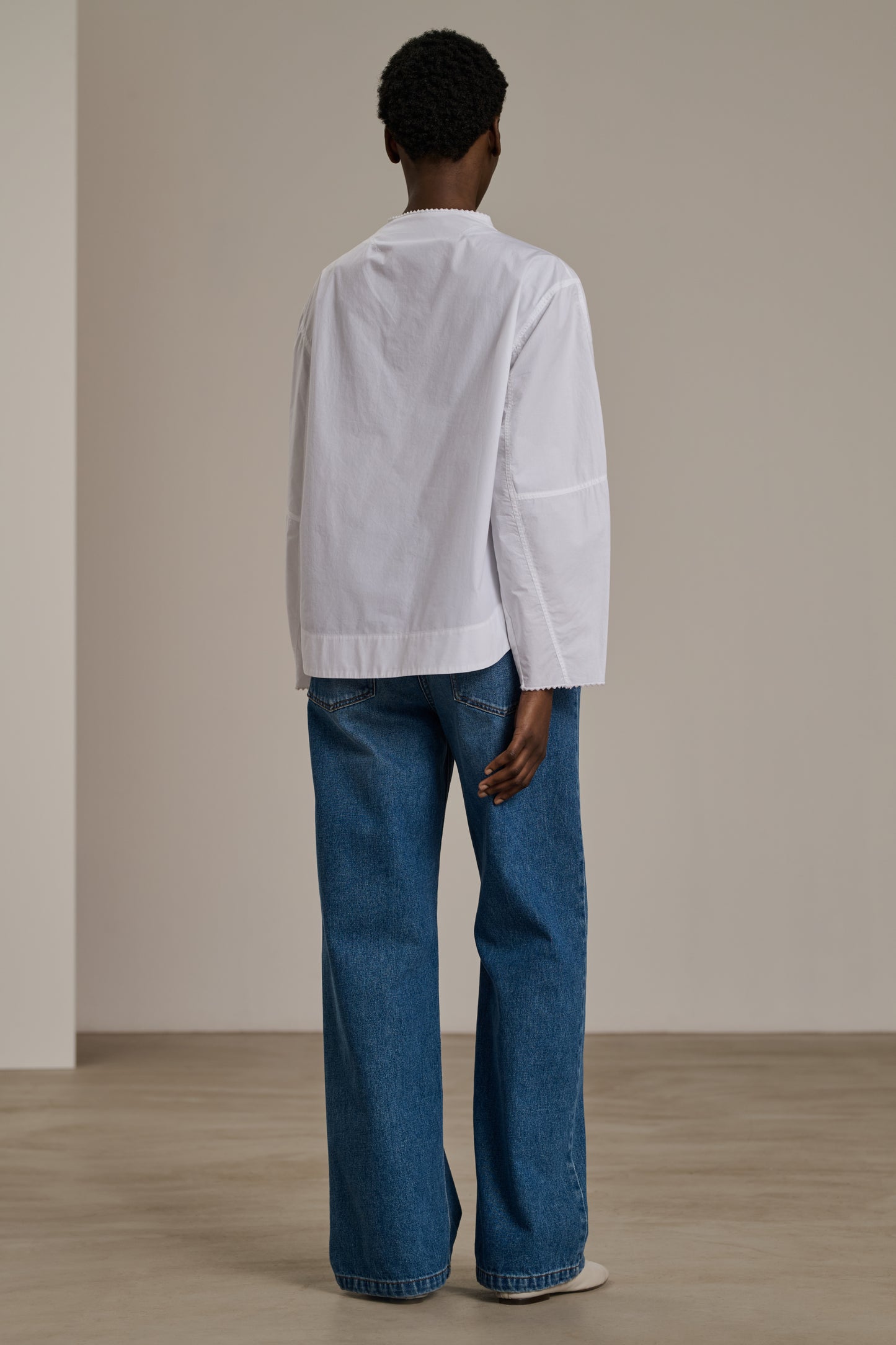 BERRY es una camisa de popelina de algodón con corte recto. Las mangas largas y el cuello se destacan por un delicado detalle de bordado, añadiendo una nota de feminidad sutil. Una camisa aparentemente clásica que combinará bien en tu guardarropa.