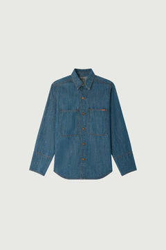 GABIN es un pantalón de denim greencast de corte amplio y recto, talle medio. Su lavado azul-verde sutil revela matices únicos. La etiqueta "Soeur" en la parte trasera añade un toque distintivo.
