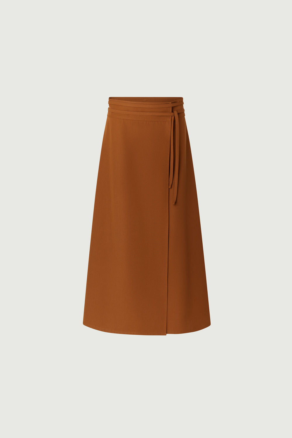 REINE es una falda cruzada de volumen en forma de trapecio que ofrece una silueta favorecedora con su talle alto y su longitud a media pantorrilla. La gabardina de lana asegura tanto confort como refinamiento, convirtiendo esta falda en una elección ideal para añadir un toque de sofisticación a tus conjuntos de temporada.