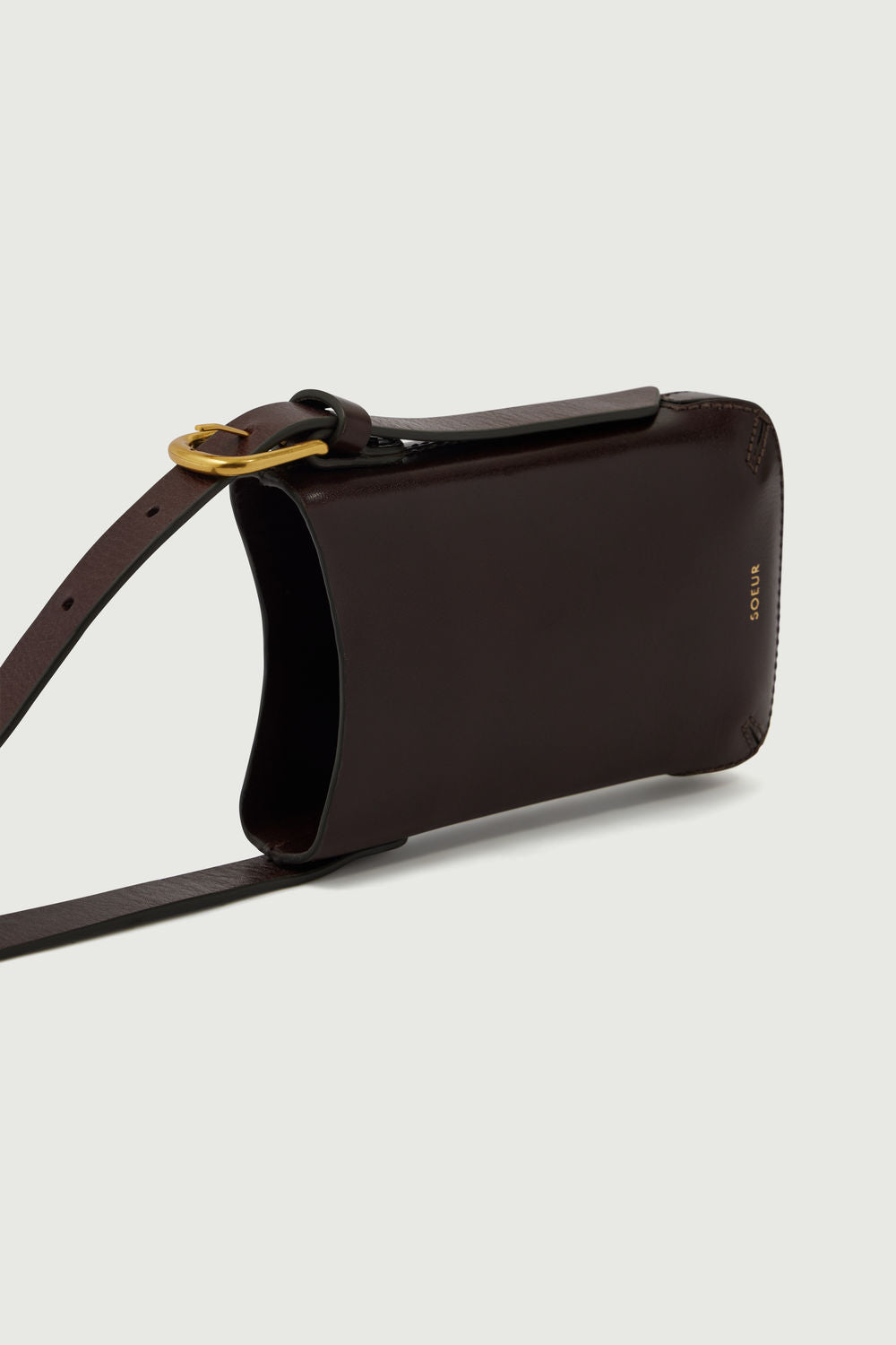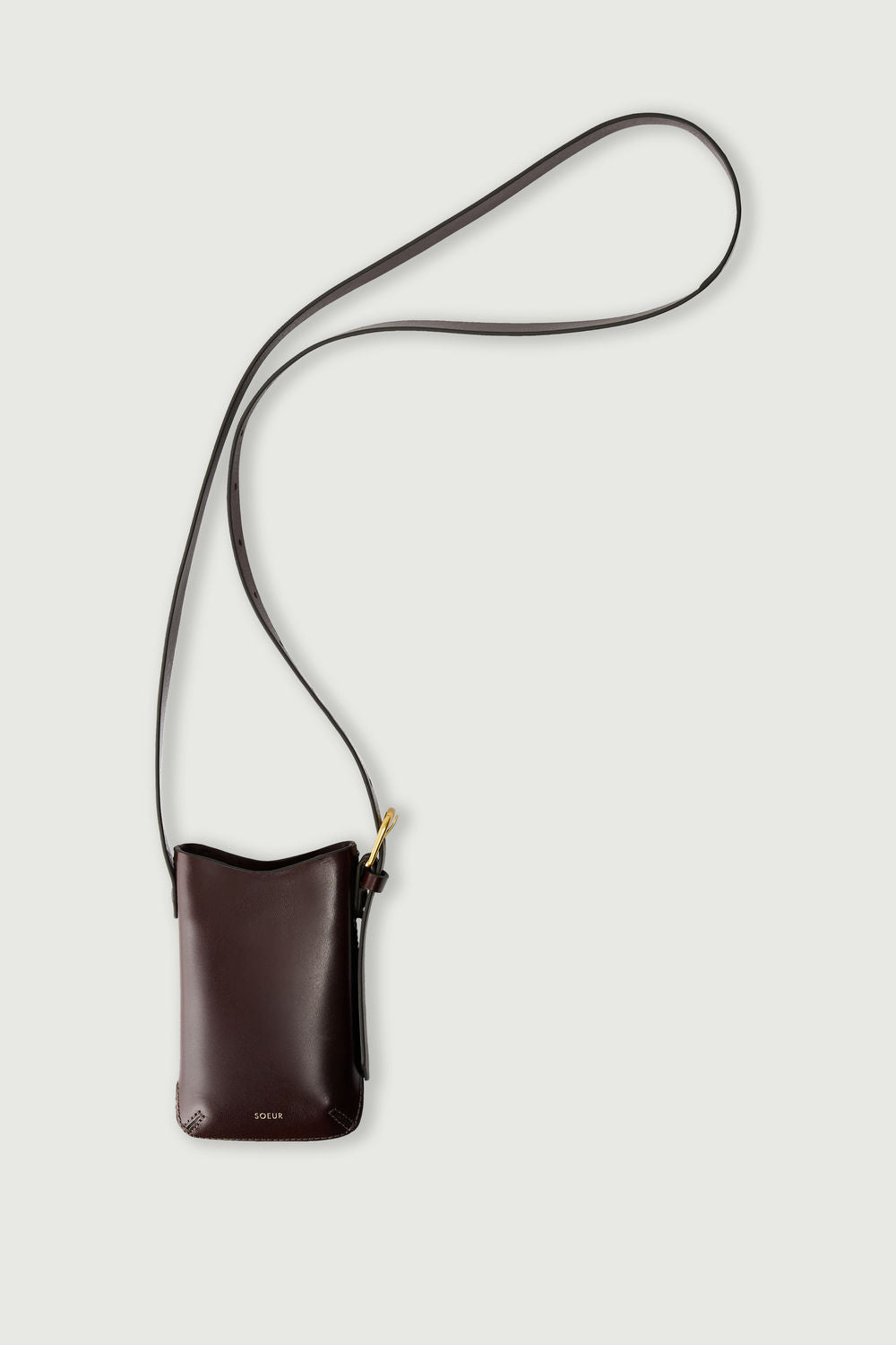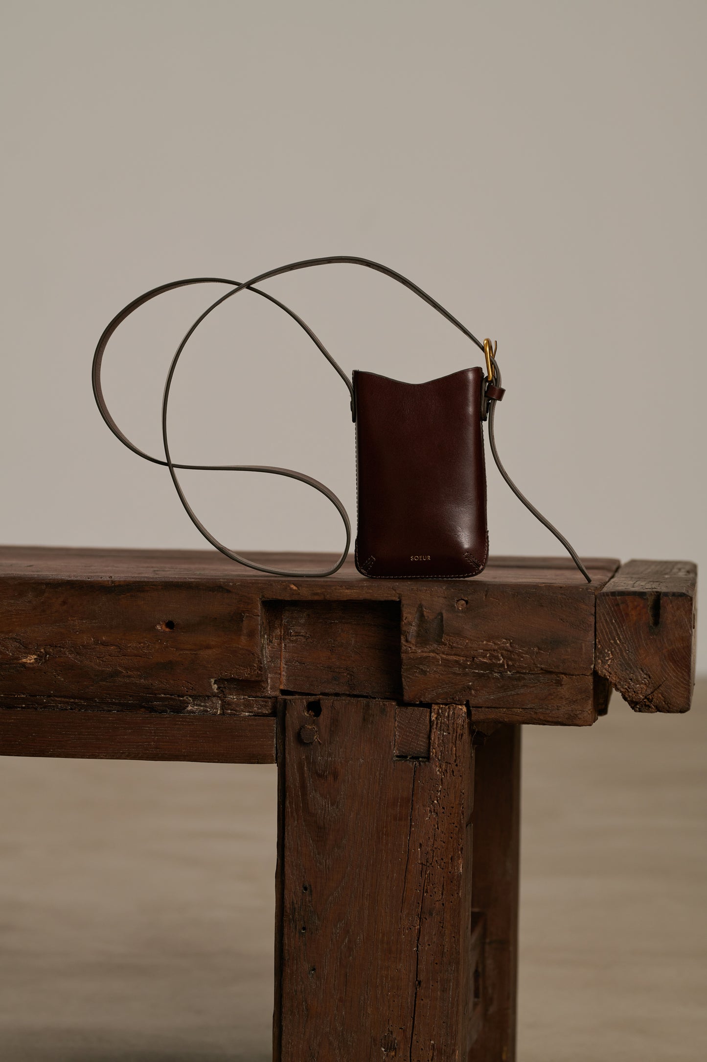 bolsillo cali Soporte para teléfono de cuero brillante marrón