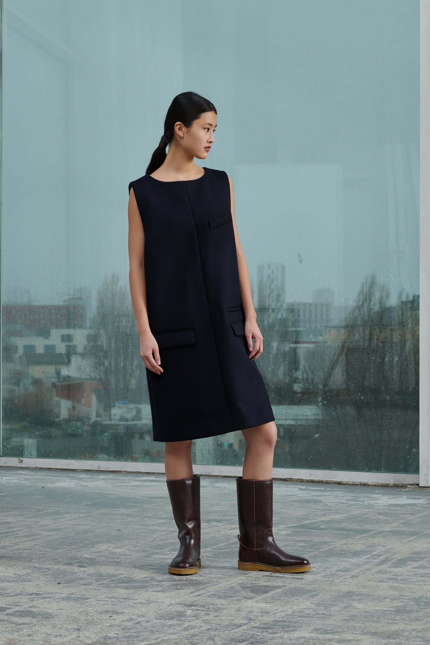 Vestido corto de paño de lana - Corte trapecio- Escote redondo- Pinzas delante- Abertura con cremallera oculta en la parte trasera